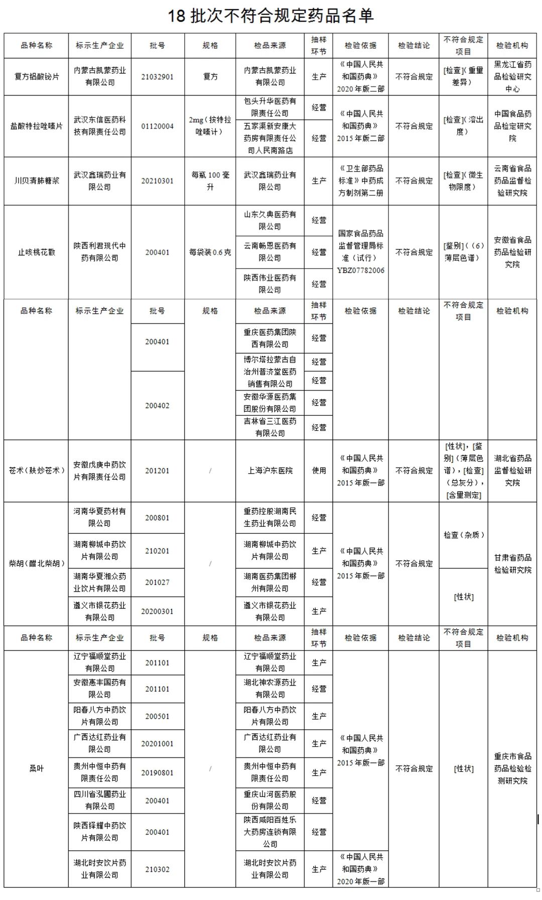 不符合规定药品名单↓↓↓