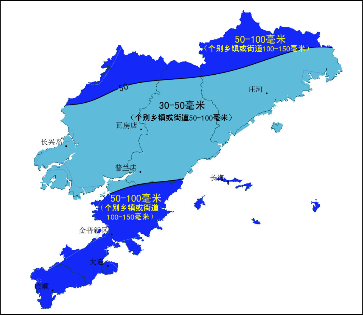2021年10月3日14时~4日14时大连市降雨量预报图