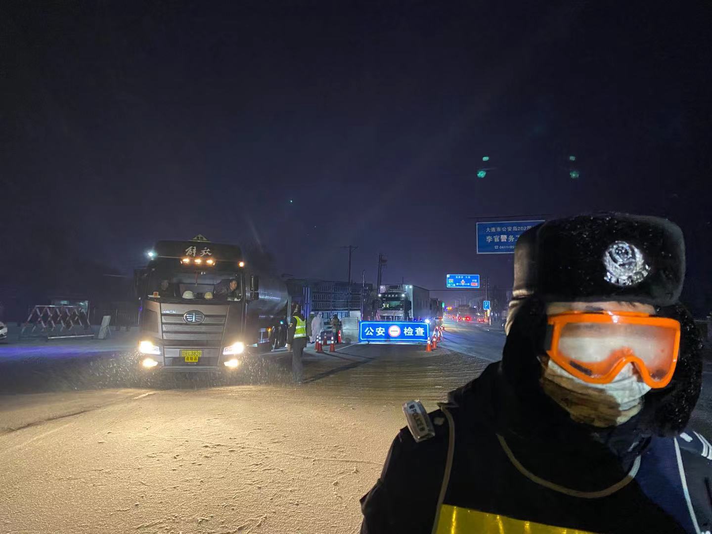 夜幕降临,风越刮越大,雪越下越猛,路上急需离连的大货车、油罐车逐渐增多,6个卡点到永宁永安医院的路上排成了长龙,司机们的心情越发急躁,交通疏导压力急剧增加,民警们不畏严寒,耐心地劝导司机,提醒安全行驶,疏导车辆,维护检测秩序。风雪中,有的民警摔倒了再爬起来,有的民警喊哑了嗓子……他们衣领里、袖子里、鞋里灌满了雪,头发、睫毛上挂满了冰霜,但他们全然不顾,全力以赴确保道路安全畅通,维护核酸检测秩序。