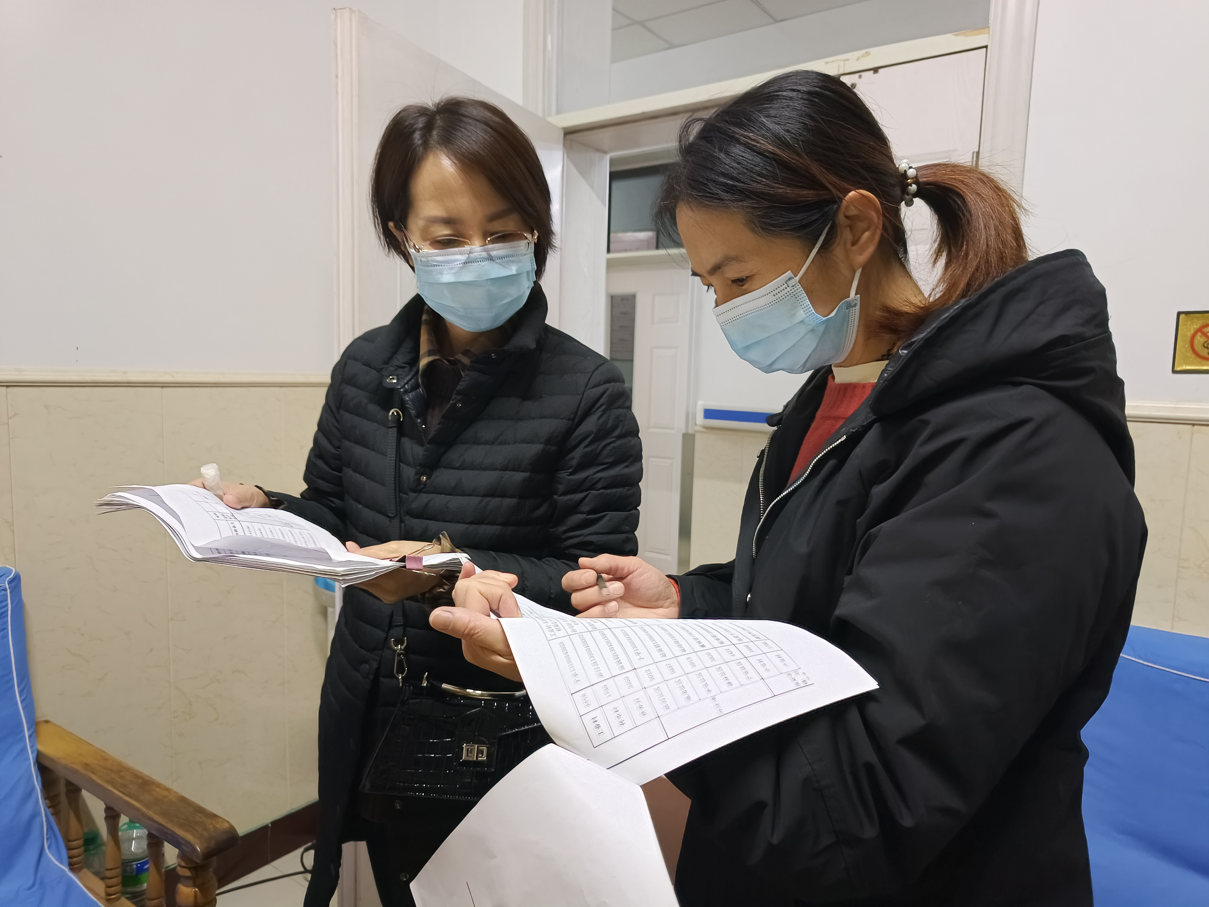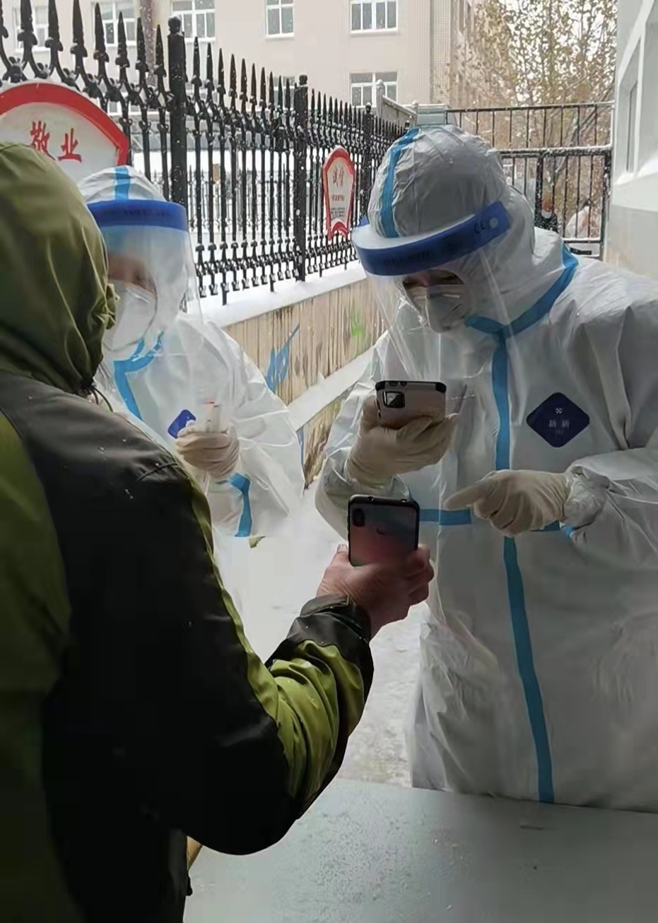 血透室护士长于新爽在检测点忙地顾不上吃饭,直到低血糖晕倒在岗位上。经过短暂的休息,仍然坚守在岗位上微笑着面对着每一位受检人员。脑病科郭艳红护士长本来骨折术后还没恢复好,主动要求参加,因为下雪路滑又不慎造成腰伤,后来还一直坚持在一线。呼吸科护士长周敏患有腰间盘突出,一直坚持参加核酸采样,在检测点因雪地路滑脚踝扭伤。