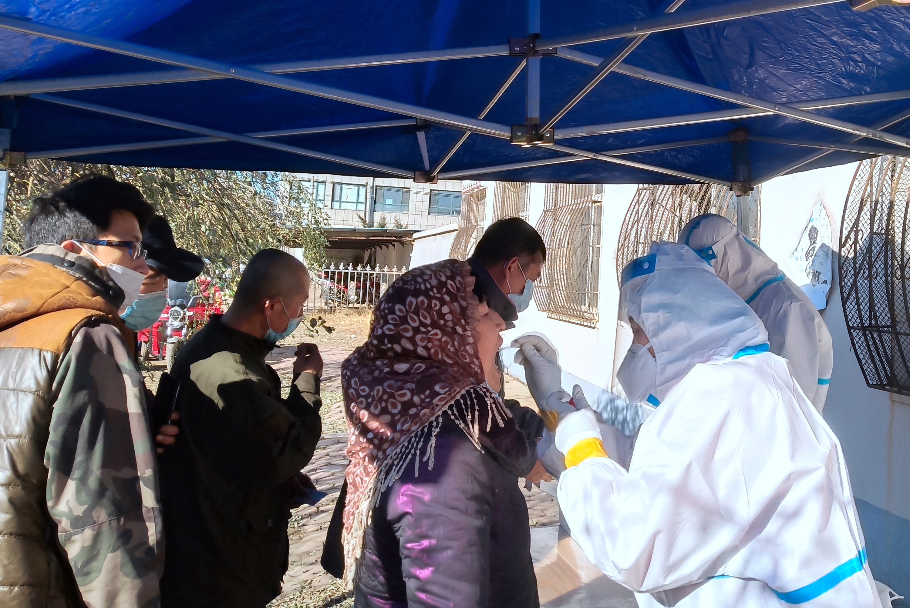 从11月8日开始的今年第一轮核酸检测采样,到11月22日第五轮采样结束,参与的医护人员548人次,共采集282522人次。在20多个农村乡镇留下了他们的身影。在城区内,医院利用救护车派出流动采样组,护士们背着自己制作的便携式采样包,上门入户为定点人群和单位采样。