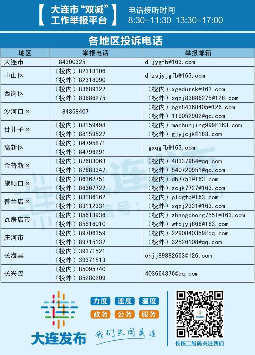 并公布大连市“双减”工作举报平台