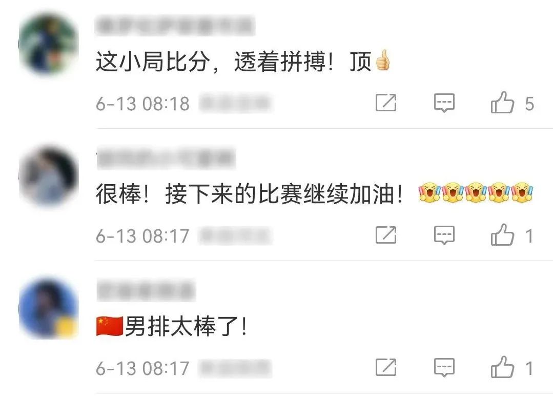 网友纷纷为中国男排点赞