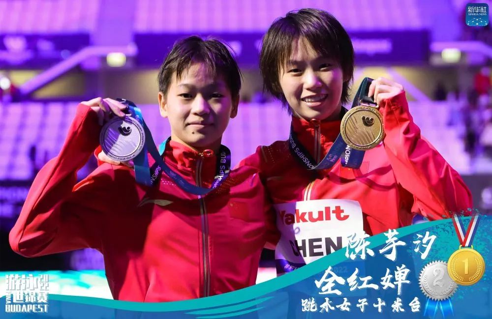 当地时间6月27日,在匈牙利首都布达佩斯举行的2022年世界游泳锦标赛跳水项目女子十米台决赛中,中国选手陈芋汐、全红婵包揽冠亚军。