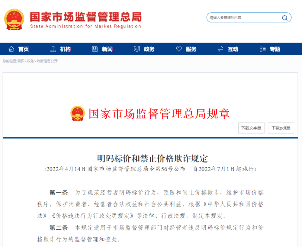 由市场监管总局公布的《明码标价和禁止价格欺诈规定》自今年7月起施行。规定明确七种典型价格欺诈行为、不再过多限制经营者的标价方式、灵活规定网络交易明码标价的形式,对于明码标价规则和价格欺诈行为的认定更加科学合理。