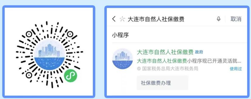 小程序可通过微信搜索“大连市自然人社保缴费”或扫描二维码获取。