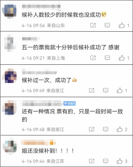 对于候补订票的成功率,一些网友称“每次都能买到”,也有些网友表示等待许久也抢不到。