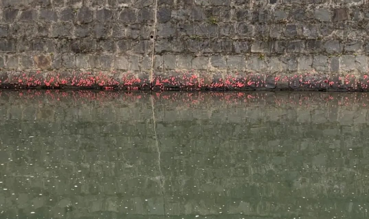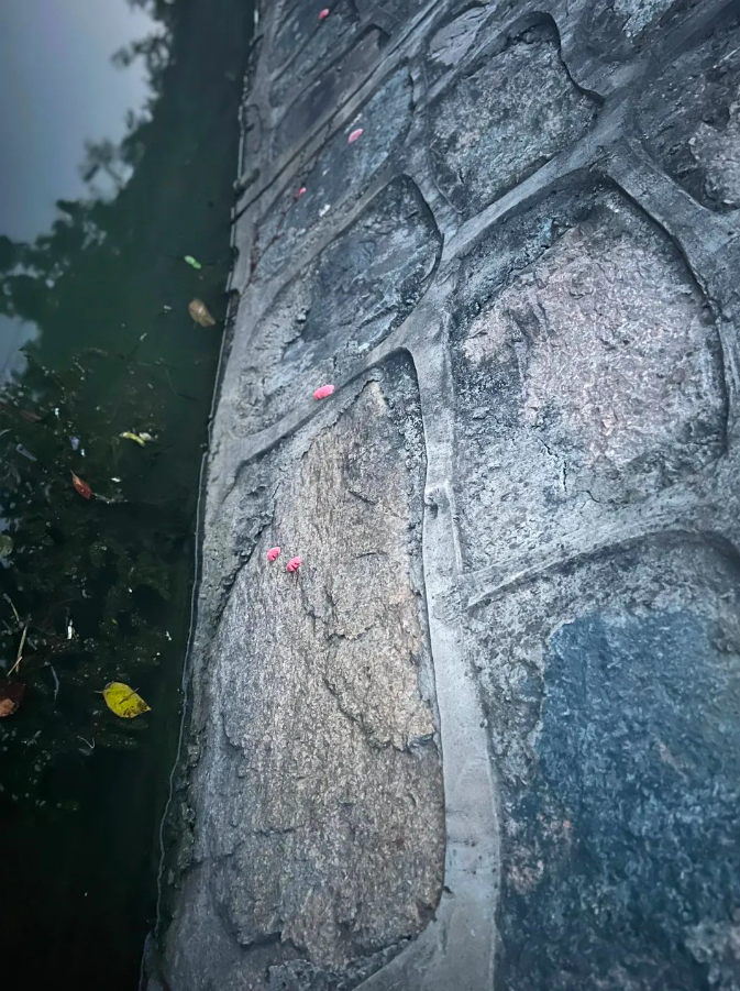这种粉色的卵是“福寿螺卵”每年4至6月是福寿螺产卵、孵化的高峰期千万别碰其体内含有大量的寄生虫近期已有多地出现福寿螺卵 上海 日前记者来到上海青浦区建丰河新槎浦处看到河道保洁员正沿着河边清理福寿螺卵