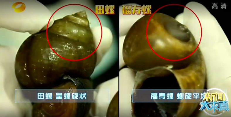 务必提高警惕!福寿螺是一种人畜共患寄生虫病的中间宿主据统计一个福寿螺中含有寄生虫少的有3000条,多的达6000条人食用生的或加热不彻底的已感染广州管圆线虫幼虫的福寿螺后严重者会出现瘫痪、嗜睡、昏迷等,甚至死亡而福寿螺每年4月开始繁殖6月、7月就到了幼卵出现的高峰期我们常吃的田螺与福寿螺的外观有些类似那么我们该如何区分和辨别田螺和福寿螺呢?