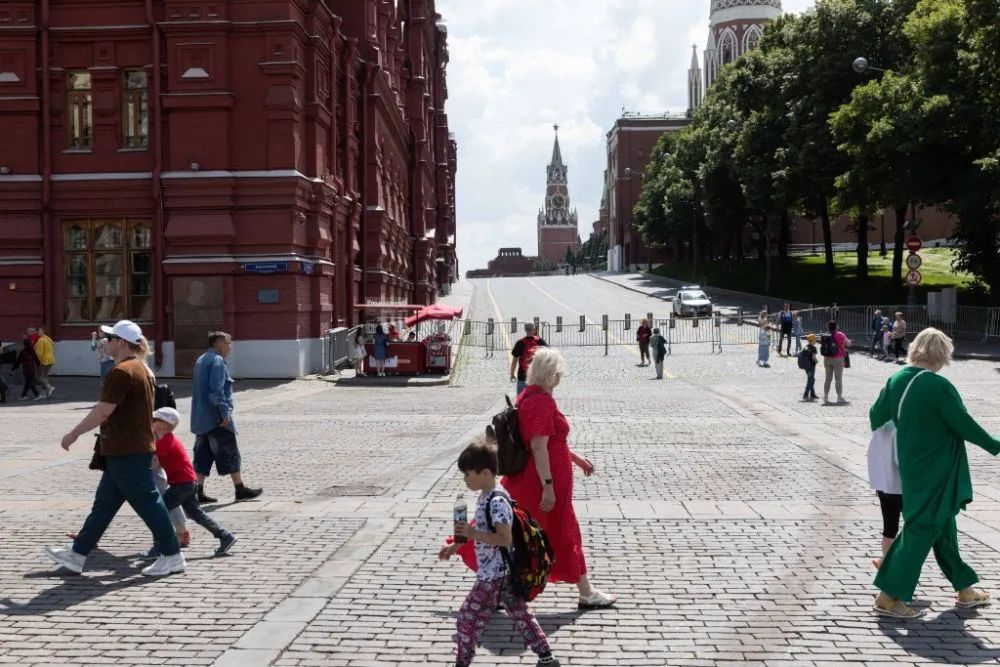 6月26日,在俄罗斯首都莫斯科,人们从红场附近走过。新华社记者 白雪骐 摄