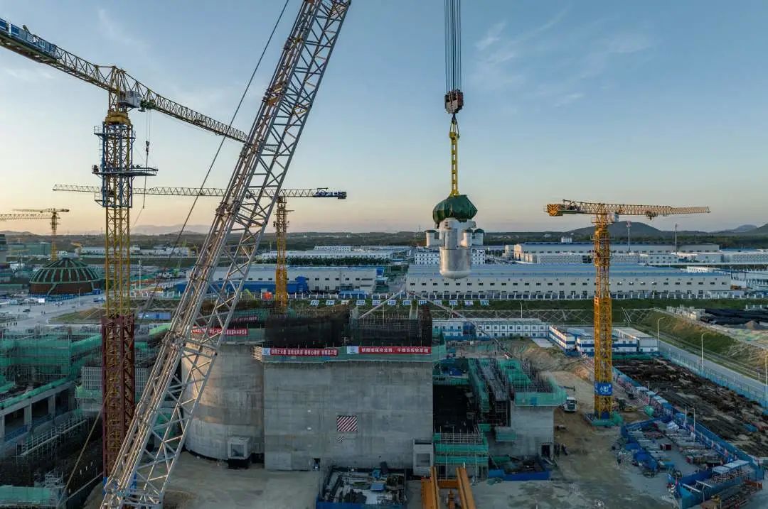 吊装成功!压力容器、蒸发器等关键设备一步到位,“玲龙一号”全球首堆的安装工作步入高峰期。