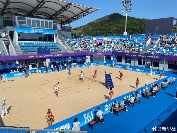 19日,在19届亚运会沙滩排球小组赛揭幕战中,中国男子沙滩排球队2:0战胜巴勒斯坦队,取得开门红。