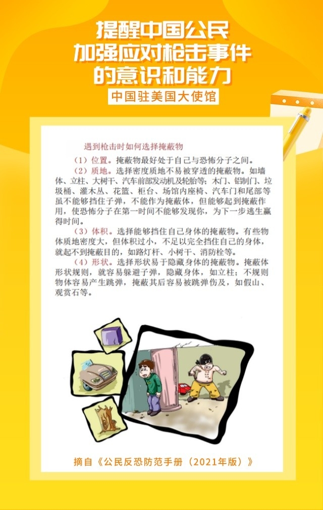 提醒中国公民加强应对枪击事件的意识和能力